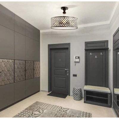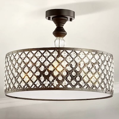 17″ Elise 3-Light Crystal/Metal Drum Semi-Flush Mount Black – JONATHAN Y