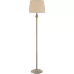 - Bronze finish, metal construction. Linen fabric uno-fitter drum shade.