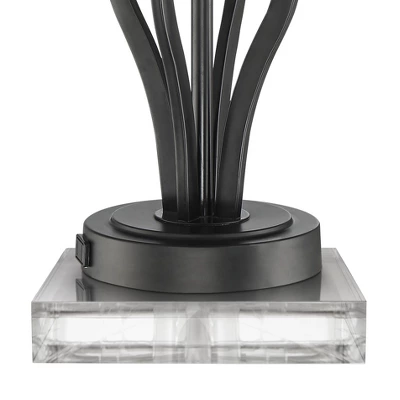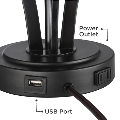 360 Lighting Heather Modern Accent Table Lamps Set Of 2 With Square Risers 22 1/2″ High Iron USB And AC Power Outlet In Base Off White Glass For Desk