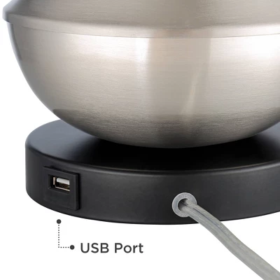 360 Lighting Simon Modern Accent Table Lamps Set Of 2 21″ High Silver With USB Charging Port White Glass Dome Shade For Bedroom Living Room House Desk