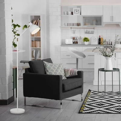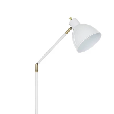 Create a welcoming, inviting space with this schoolhouse-inspired, fully adjustable metal floor lamp. Whether you need extra light near your desk, crafting area, kitchen table, bedroom, or living room, this stylish fixture offers bright directional lighting wherever you need it most. With a contemporary glossy white finish and classic shiny brass metal accents, this lamp’s transitional look is sure never go out of style. Perfect for modern, mid-century modern, contemporary, industrial, or transitional home decor.