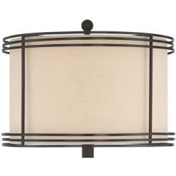 With a painted black metal pole with a repeating motif resembling carved wood, the Stratton floor lamp is a perfect style for updated traditional or soft contemporary spaces. Try its placement in the den, home office, or wherever you want to add a warm note. The medium brown burlap bell shade is secured with a round black wooden finial. A 3-way rotary socket switch will only work with a 3-way light bulb, otherwise this lamp will function with simple on/off switch at its highest setting. This floor lamp has a black cord and is smart outlet compatible. Bulb is not included.