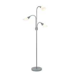 Form follows function with the unmistakable 67.75” Medusa 3-light white shade floor lamp from Catalina. Featuring a stylish Silver finish base and frame with modern white shades and flexible Gooseneck arms that allow you to direct the light where you need it most. The contemporary design brings an upscale elegance to any style home and the 4-way rotary switch allows you to adjust the lighting to the brightness you desire. Versatile enough for a living room, bedroom, family room, den or office, this Multi-Head floor lamp is a simple and easy way to enhance the style in whichever room you choose