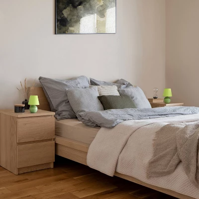 A petite table lamp set, each made primarily of ceramic with its base in the shape of a round orb sits beneath a matching colored tapered fabric shade for an overall effortlessly styled lamp suited for both your décor and lighting needs. A number of color options are available in this style, to compliment your decor just right.