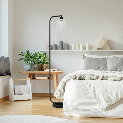 Antique Style Industrial Iron Lantern Floor Lamp With Glass Shade – Simple Designs