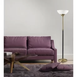 Introduce a contemporary accent to your living room or bedroom with the Director Floor lamp. The black metal tripod legs are an angular counterpoint to the black drum shade. A three-way rotary switch on the socket controls a 150 Watt incandescent bulb or equivalent CFL. The 3-way rotary socket switch will only work with a 3-way light bulb, otherwise this lamp will function with simple on/off switch at its highest setting. This lamp has a black cord that runs through the leg, hidden from sight. This lamp is also smart outlet compatible. Bulb is not included.
