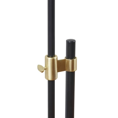Make your living room just as unique as you with the Hampton Hill Ellsworth Asymmetrical Adjustable Height Metal Floor Lamp. This floor lamp features an asymmetrical stand design, in a black finish, with a gold metal base to create an eye-catching contemporary look. The drum-shaped shade softly filters the light through the cream linen fabric to give your space a soft, warm glow. A black power cord completes this modern floor lamp, making it a perfect update to elevate your living room decor. 1 Type A bulb is needed (not included).