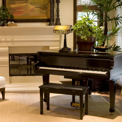 Hastings Home Tiffany Style Bankers LED Desk Lamp – 16″ High, Dark Brown