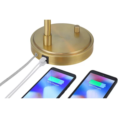 From the Possini Euro Design collection, the Vaile desk lamp offers streamlined and luxury style for your home. Inspired by Deco and modern designs, the classic profile features an arc profile with a seeded glass shade. The metal base, pole, and arm all come in a warm gold finish. Handy dual USB ports allow you to charge cell phones and other electronic devices while a convenient dimmer switch gives you easy lighting control.
