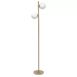 66″ Tall Mid-Century Modern Tree Floor Lamp With Dual White Glass Globe Shade Gold – Simple Designs