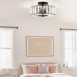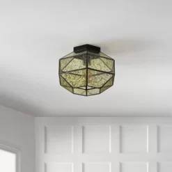 12.5″ 1-Light Evelyn Vintage Farmhouse Iron/Glass LED Flush Mount Oil Rubbed Bronze – JONATHAN Y