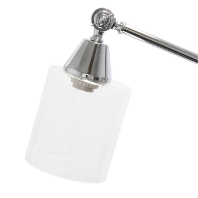 “Light up your space in style with this industrial floor lamp. With its’ clean lines, polished chrome finish and clear cylinder glass shade, this lamp will add the perfect sophisticated touch to any room in your home. Easy lever style adjustable arm with hand twist lock to suit your lighting needs. Ideal for your foyer, office, bedroom or living room.